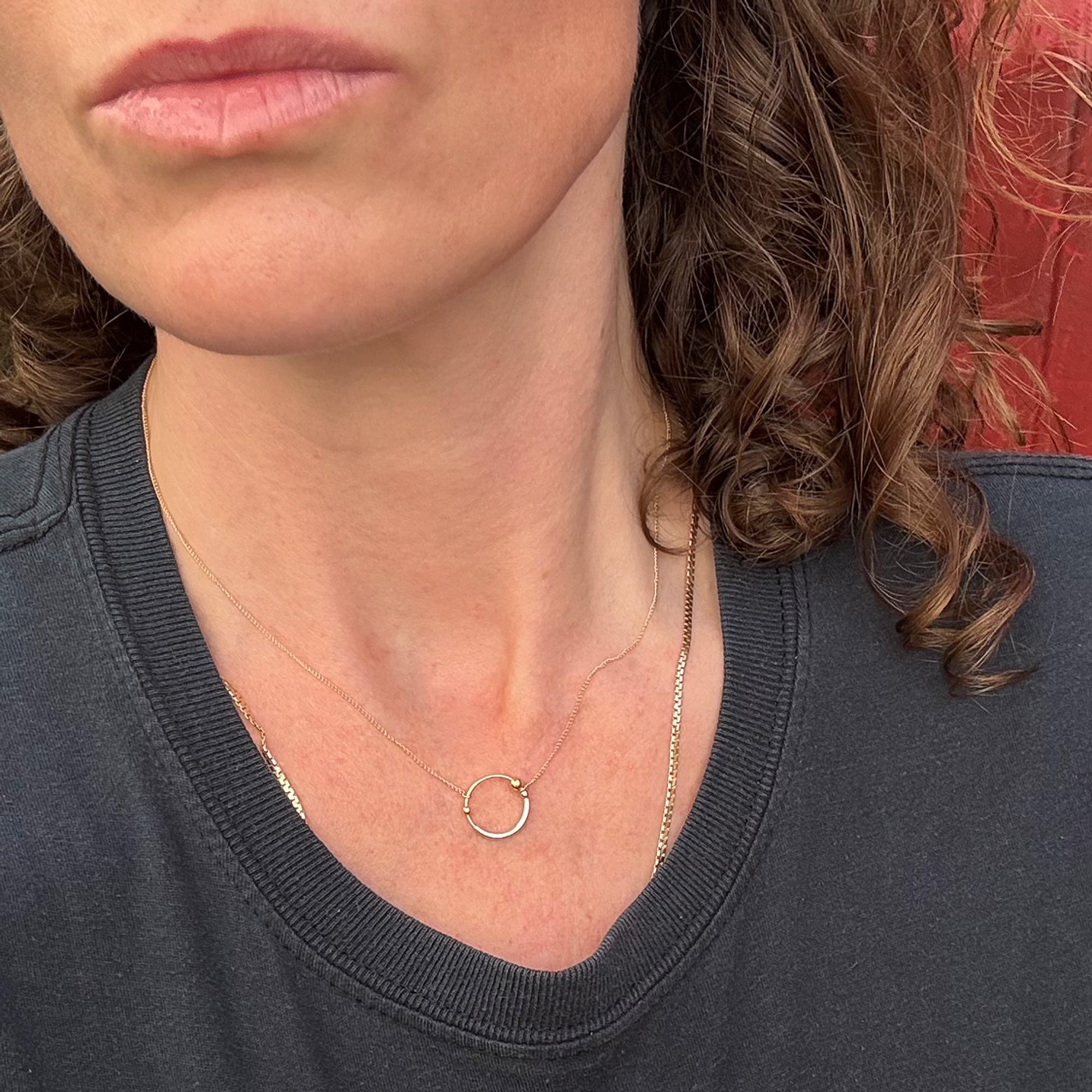 Fine round cable chain necklace with a little orbit ring pendant. Just choose your chain and length.