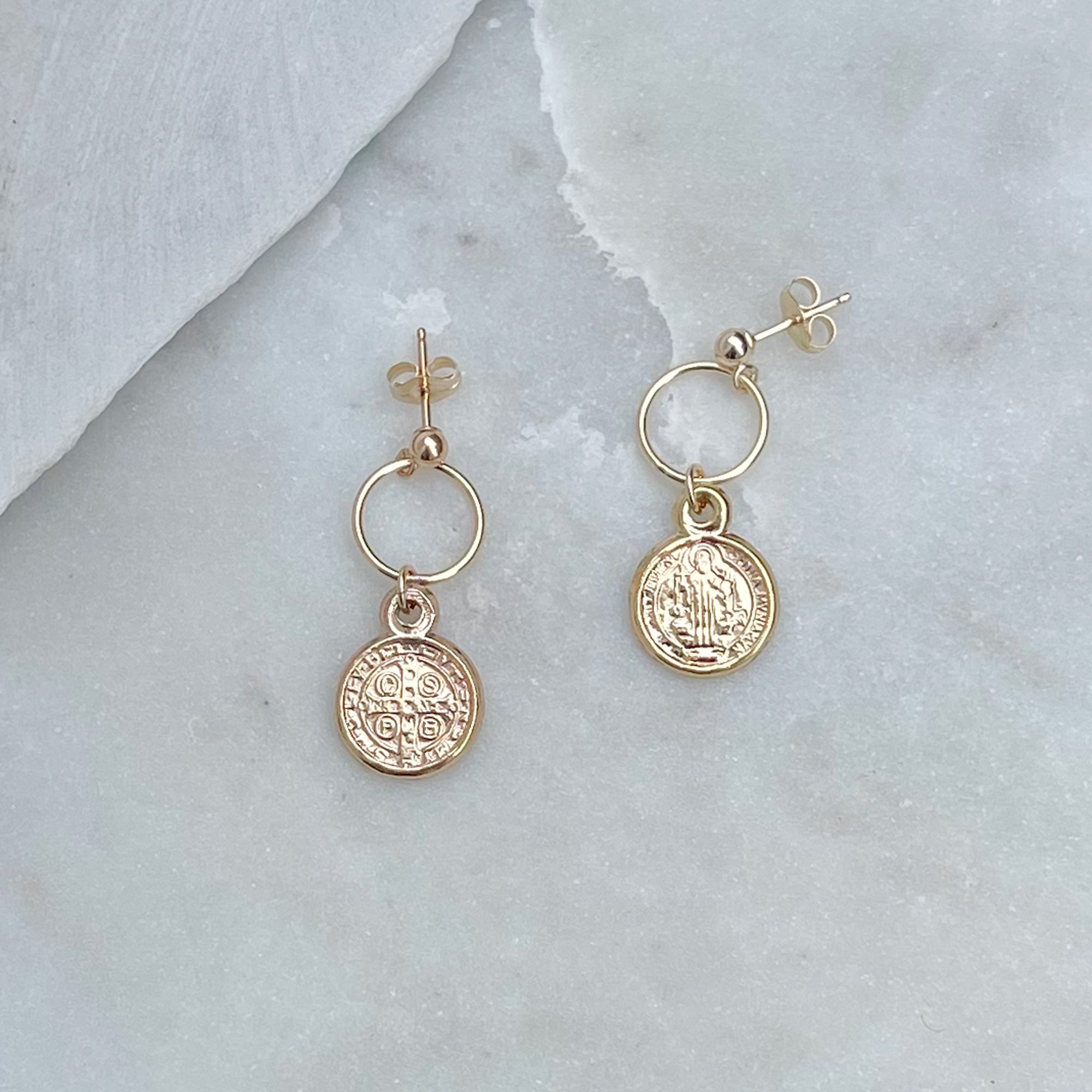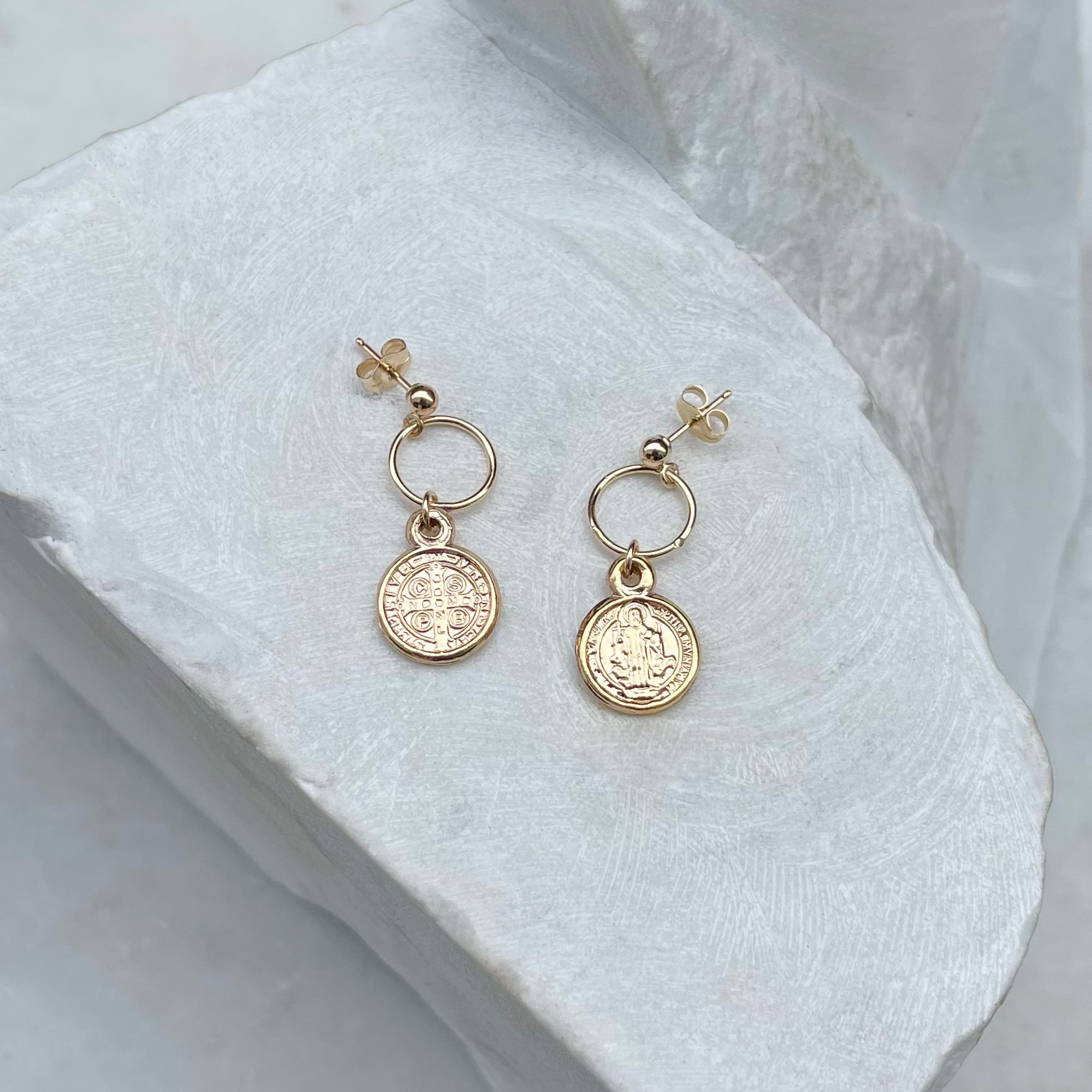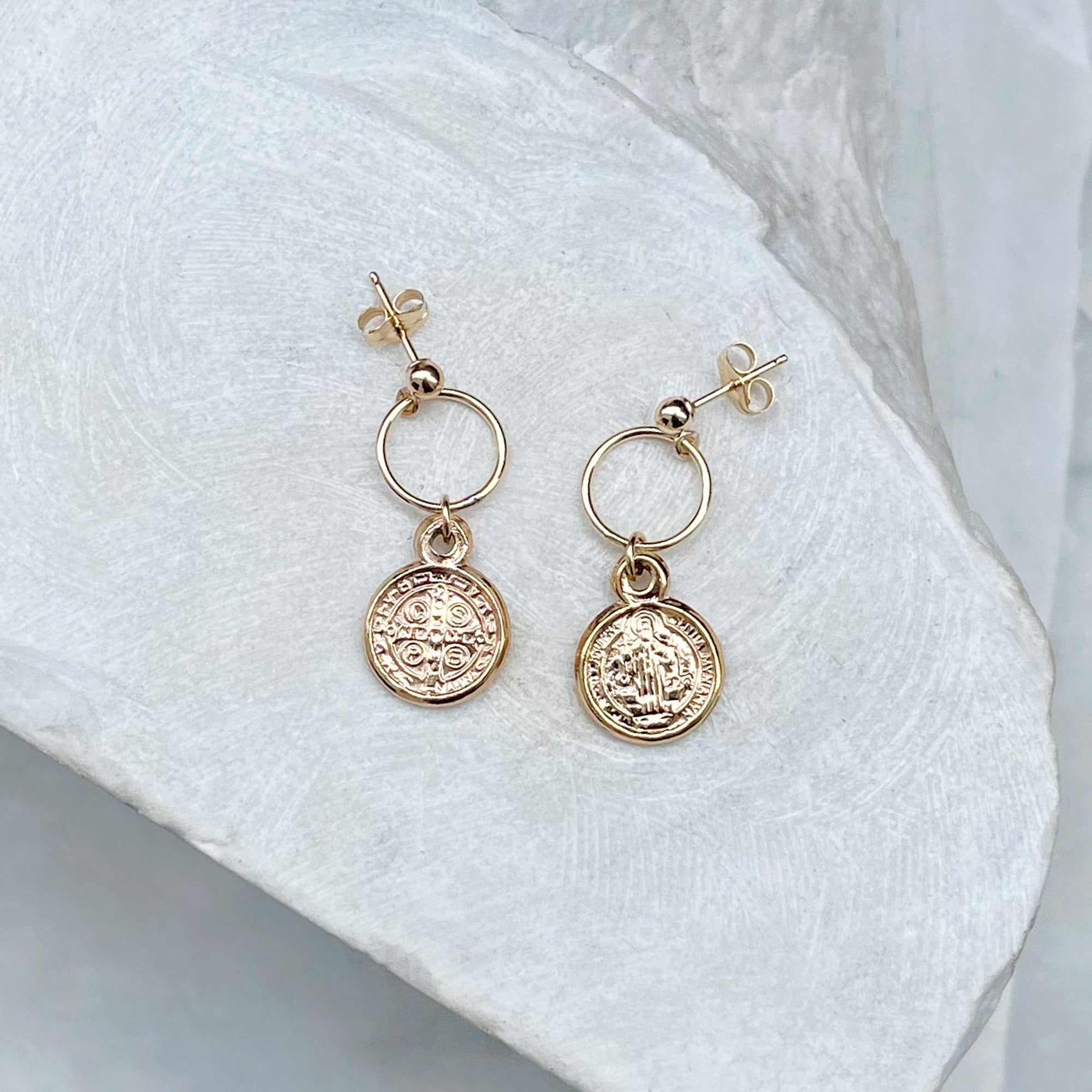 Nice amount of detail and combination of textures in these very easy to wear gold medallion earrings.