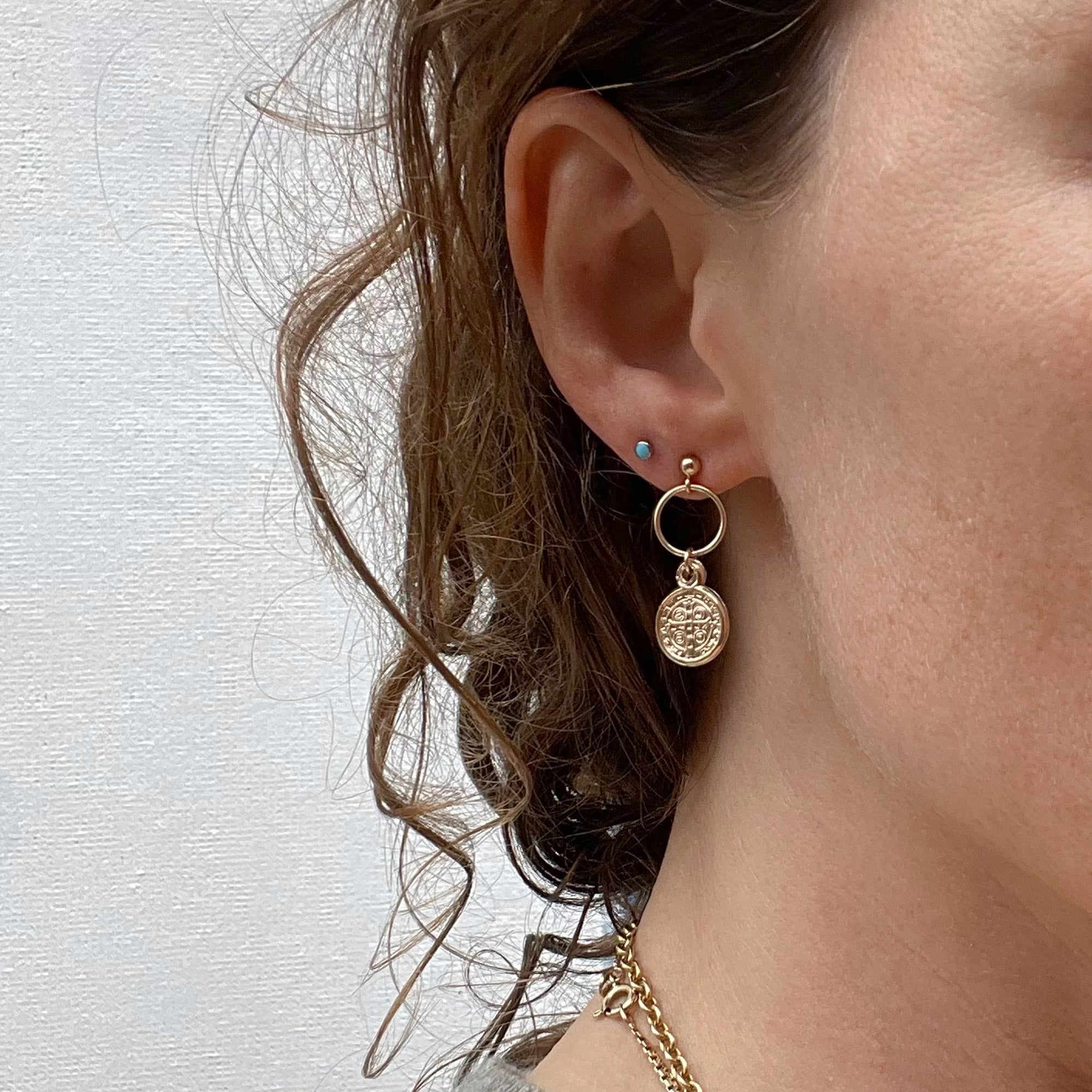ball post 3mm / circle link 10mm / san Benito pendant drop 11mm
